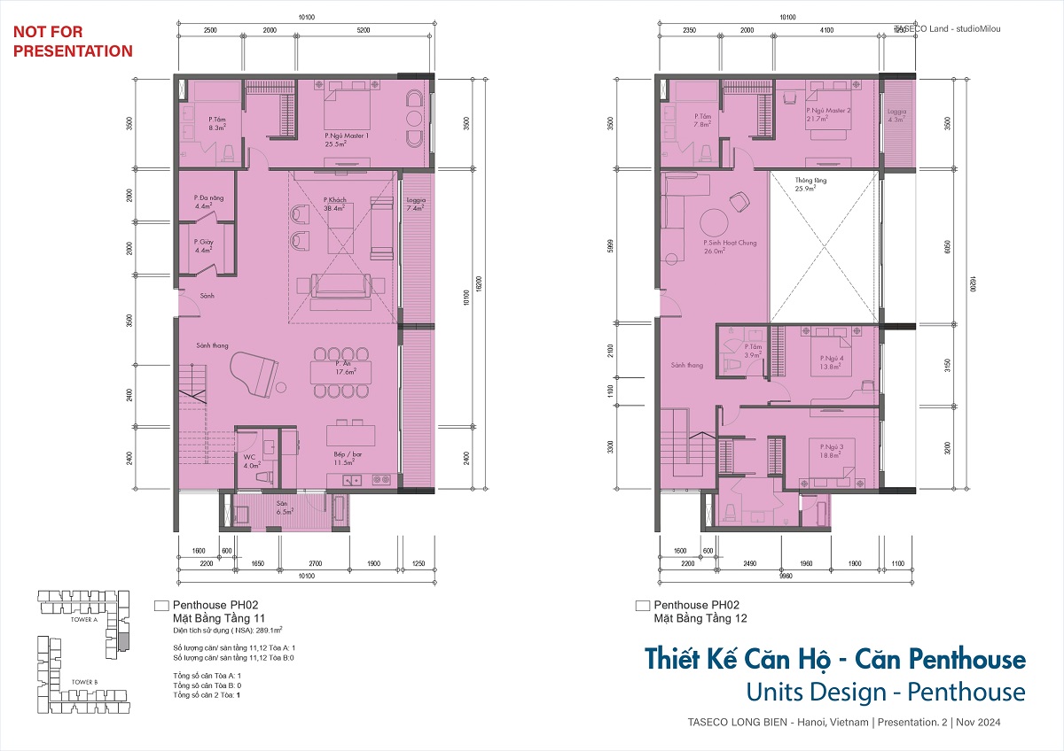 Penthouse: 280 – 376 m², mang đến không gian sống thượng lưu.